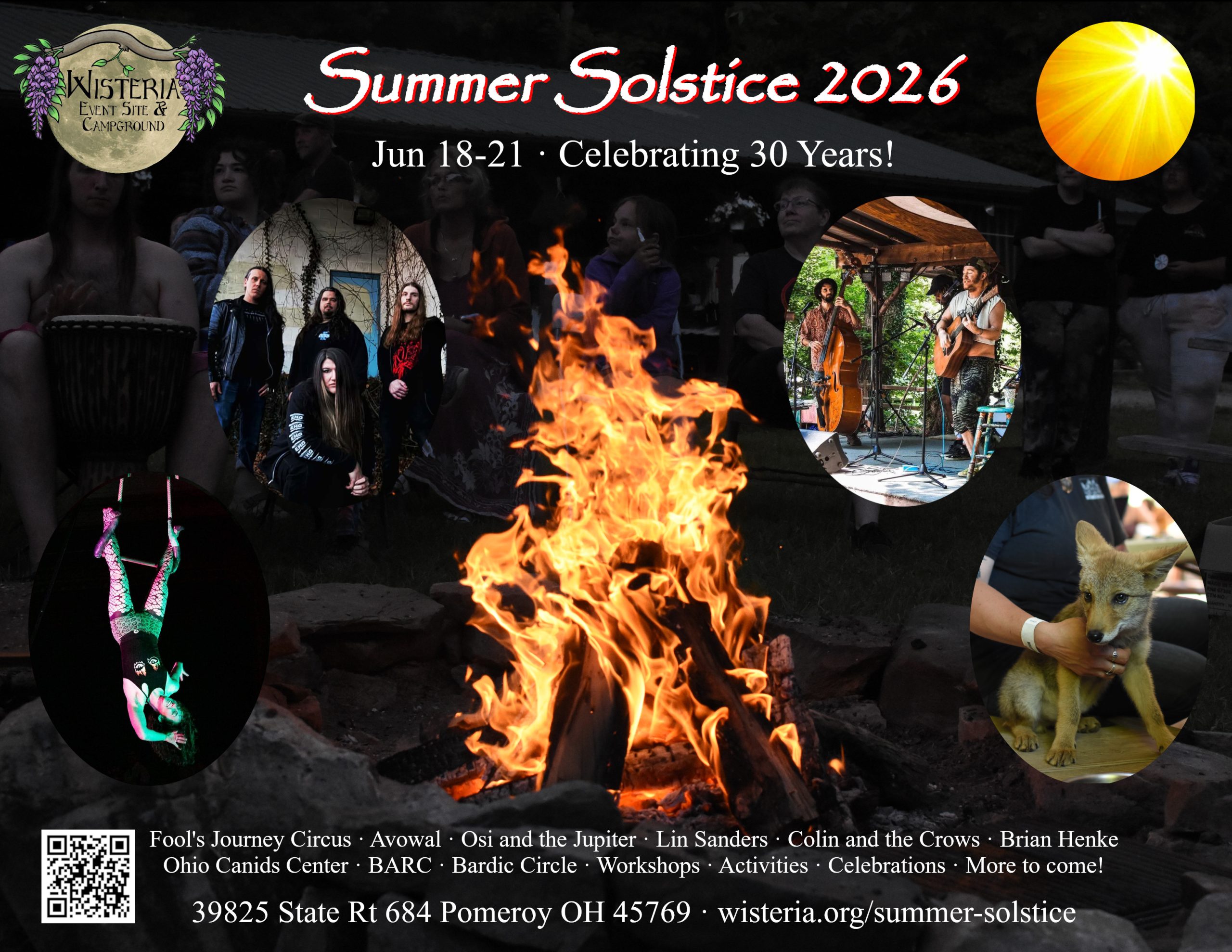 Summer Solstice returns to Wisteria this year with the best of old traditions and new. Here comes the sun, the smiles returning to faces. Celebrate the season and 30 years of Wisteria with good food, entertainment and music, presentations and workshops, seasonal celebrations, nightly fires, vendors, friends, and fun.